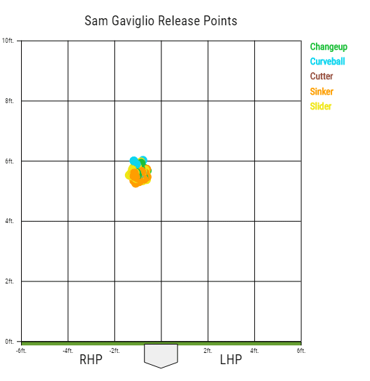 Some impressive changes here by Gaviglio compared to last year. He cut his walk rate in half, dropping from 6.9 percent to 2.9 percent this year. He bumped his strikeout rate by nine percent. His hard-hit rate decreased almost 10 percent and his slider usage has increased 14 percent compared to last season.