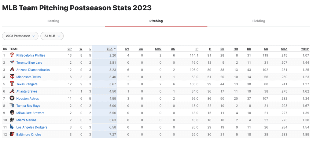 Situational scoring was something both the Rangers and the Diamondbacks have been fantastic at throughout their postseason run thus far. Sure, the Houston Astros and the Philadelphia Phillies hit more RBIs this postseason, but what these numbers don’t indicate is how often these RBIs led to lead changes or tie games. Regardless of the overall RBIs, the Rangers and the Diamondbacks consistently scored after putting their runners on base. Let’s not forget that the stats on hitting with runners in scoring position are filled with noise but both teams cut through that noise effectively by being selective with their pitches and doing the most damage when it mattered.