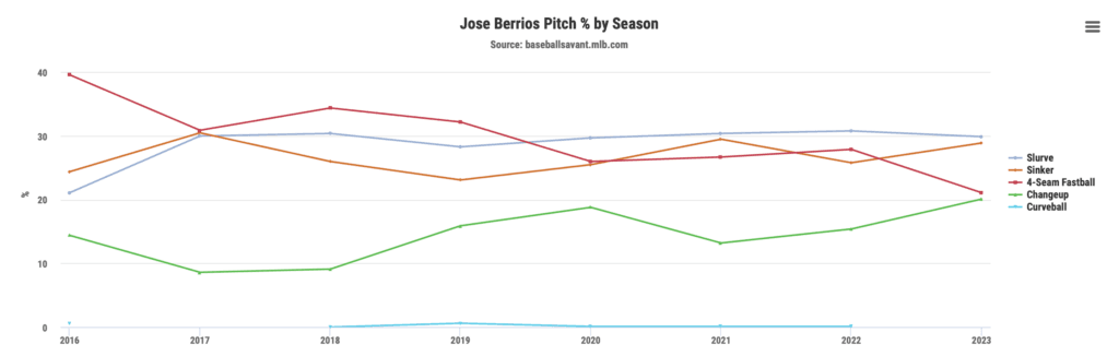 A similar issue exists on the pitching side of the ball. Last year, much was made of José Berríos’s struggle, and many fans and writers theorized that it had a lot to do with a poor four-seam fastball thrown by the right-hander.