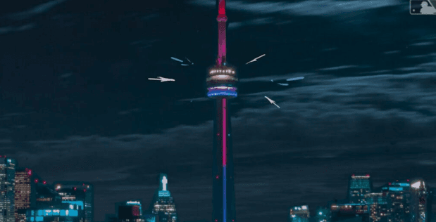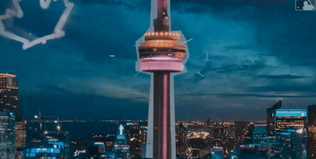 The first notable screencap is the low-hanging fruit, but it feels like the CN Tower will inevitably become part of a Toronto-themed MLB jersey. You can’t get much more literal than arrows pointing directly at one of Toronto’s iconic landmarks.