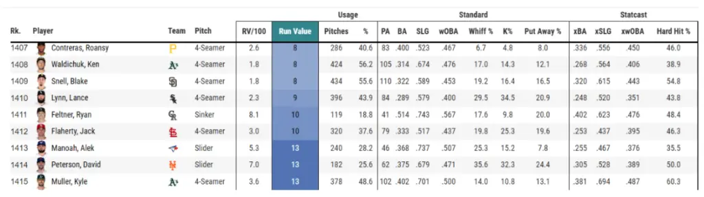 As of the time of this writing, his only pitch that has a top 50 value right now is his sinker, with a minus 6 run value. His next pitch you may ask? His changeup which is a 2, ranks 1131st in the league. If we are looking specifically at Sliders, and how he ranks in the league, well, it would be second last at the time of writing.
