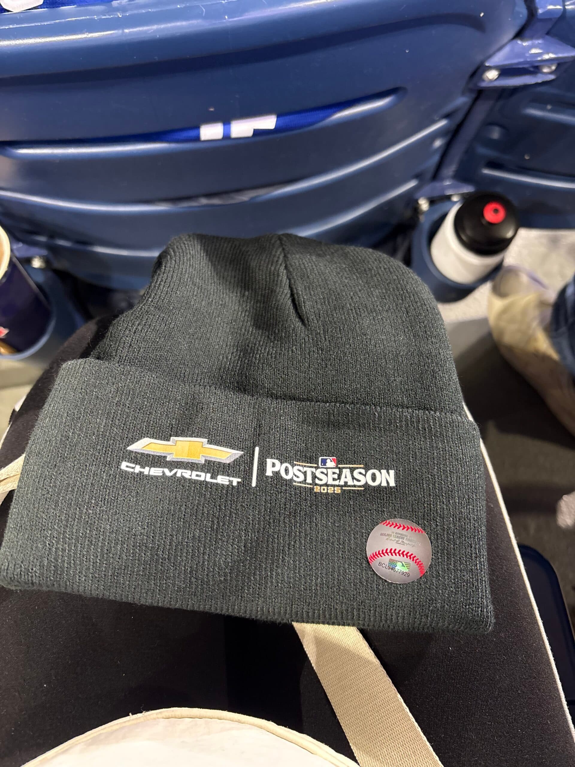This is the best and worst-kept secret so far for the watch party at Rogers Centre: there are free swags all around the stadium. The easiest freebie to find was small bags of popcorn with the Blue Jays’ logo, which was the most accessible item for many fans who were attending the watch party. Some fans also scored free black postseason beanies and another item in blue with the slogan “Want It All.”