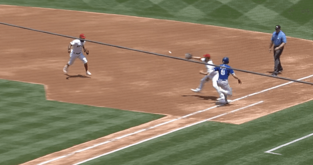 On the next one, Biggio taps one into the shift that Angels second baseman Luis Rengifo tries to flip over to first, but Biggio beats it by a half step.