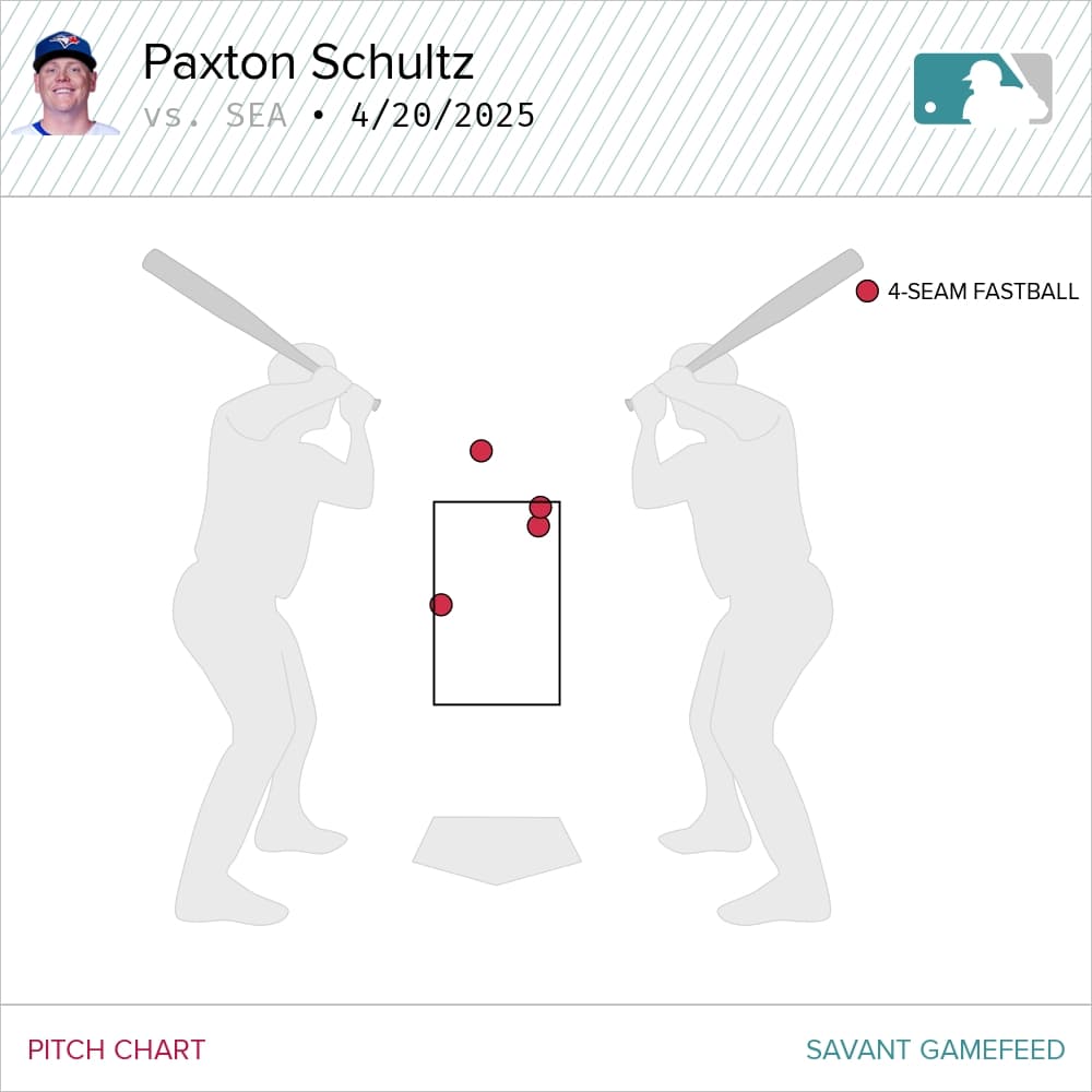 Still, part of what contributed to Schultz’s dominant debut was the command of his four-seamer that induced half of his eight strikeouts and controlled the upper quadrant of the strike zone by averaging 18 inches of induced vertical break, making it tough for opposing batters to create contact against its late-riding action.