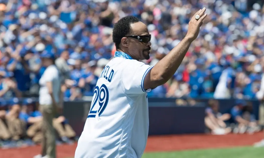 May 29, 2016; Toronto, Ontario, CAN; Toronto Blue Jays former player and alumni Jesse Barfield acknowledges the crowd during the 40th season ceremonies before a game against the Boston Red Sox at Rogers Centre. The Boston Red Sox won 5-3. Mandatory Credit: Nick Turchiaro-USA TODAY Sports