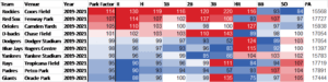 These are the park factors from Baseball Savant for the two divisions. The Giants play in one of the most pitcher-friendly park in the league. It has the lowest park factor for home runs and tied for the lowest for runs scored. Toronto on the other hand, due its smaller dimensions is a great place to hit homers but actually has the lowest park factor for singles. Gausman is going to give up more home runs pitching in this division. As we saw with Ray giving up home runs isn’t the end of the world if you can limit the number of base runners you put on.