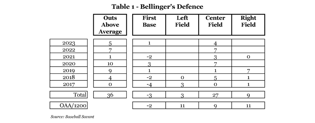 Yet, there is a concern that Bellinger’s 2023 campaign at the plate was a mirage. Therefore, I will address Bellinger’s hitting after I have examined other aspects of his performance. Accordingly, I have organized the analysis as follows:
