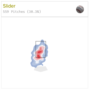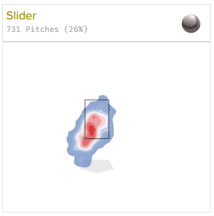 Part of the reason for his comeback was due to his newly revamped slider, which was a massive issue this year for hitters, more so right-handed batters. With an average of about 89 mph, it has improved greatly from last season which only averaged around 86 mph. Interestingly, this pitch had a lot of success outside the zone, throwing it in a 1-2 count around 34% of the time.